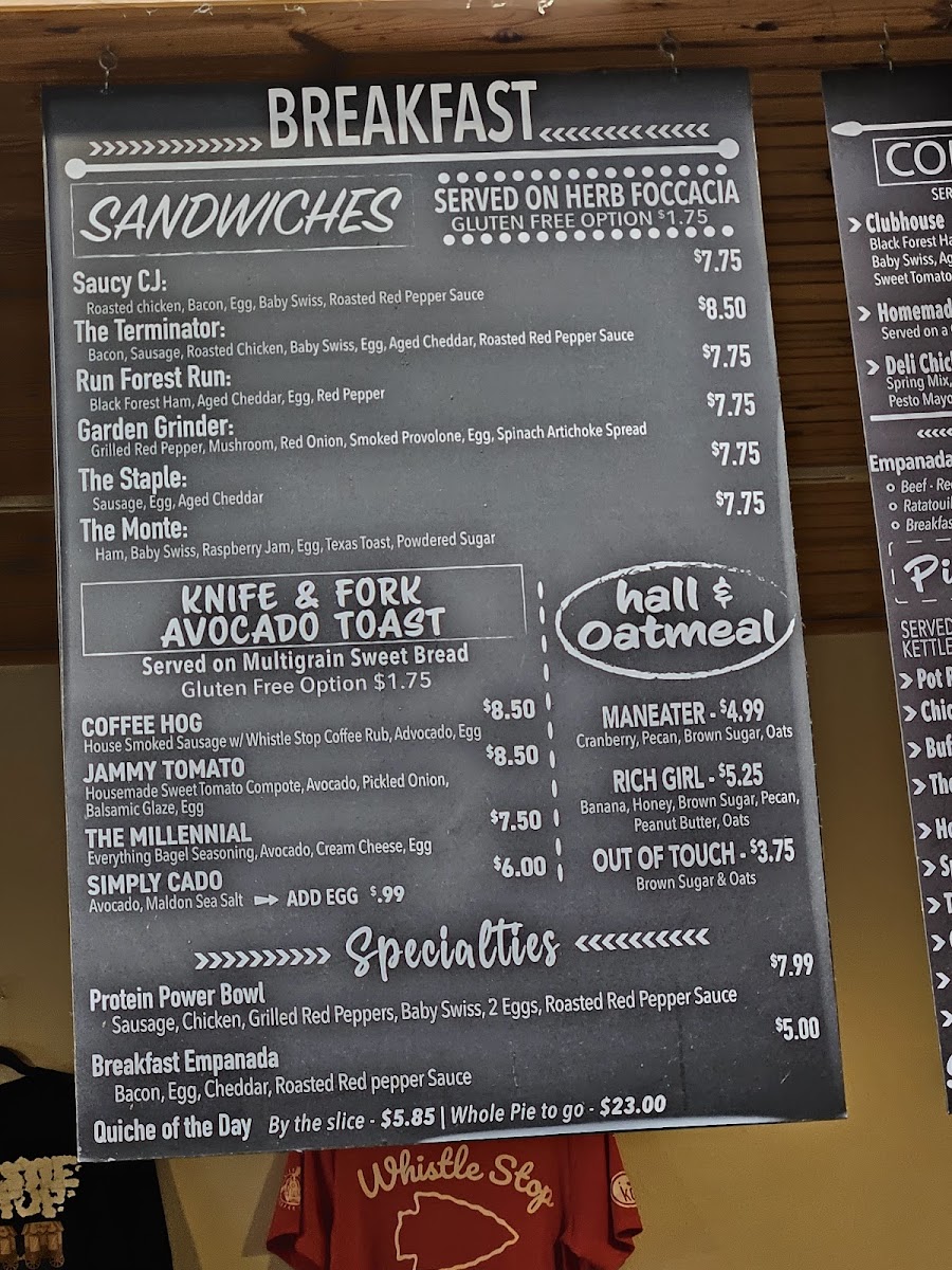 At Whistle Stop, you’ll discover a menu crafted with love and attention to detail, perfect for early risers or those seeking a leisurely brunch. Begin your day with the Monte Ham, an irresistible concoction of baby Swiss cheese, raspberry jam, and egg perfectly nestled between slices of multigrain bread, finished with a dusting of powdered sugar for just $10.45. If you're leaning towards something more savory, the Coffee Hog Avocado Toast is a must-try, featuring house-smoked sausage, avocado, and eggs, bringing rich flavors to your palate at $11.22.